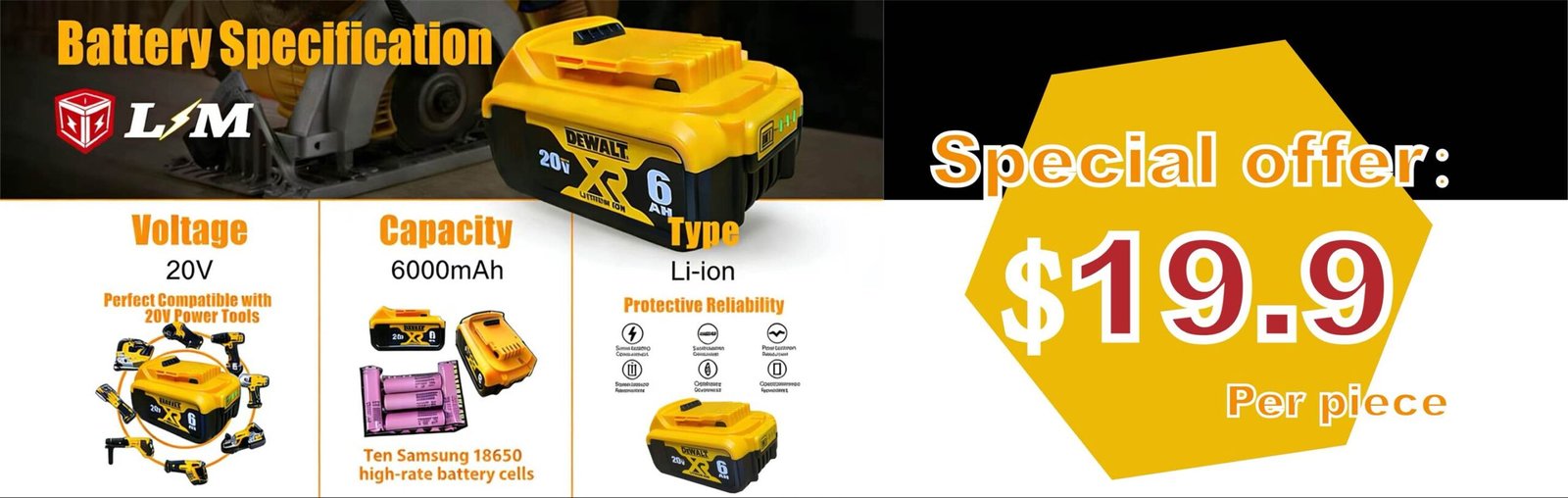 DEWALT 20V 6.0Ah Lithium-Ion replacement Battery,Universal Power Connector – compatible with various 20V tools