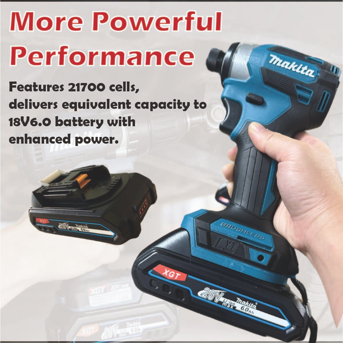 Makita Replacement Battery|20V 6.0Ah Lithium Battery|Samsung 21700 Cells|Slim & High Compatibility